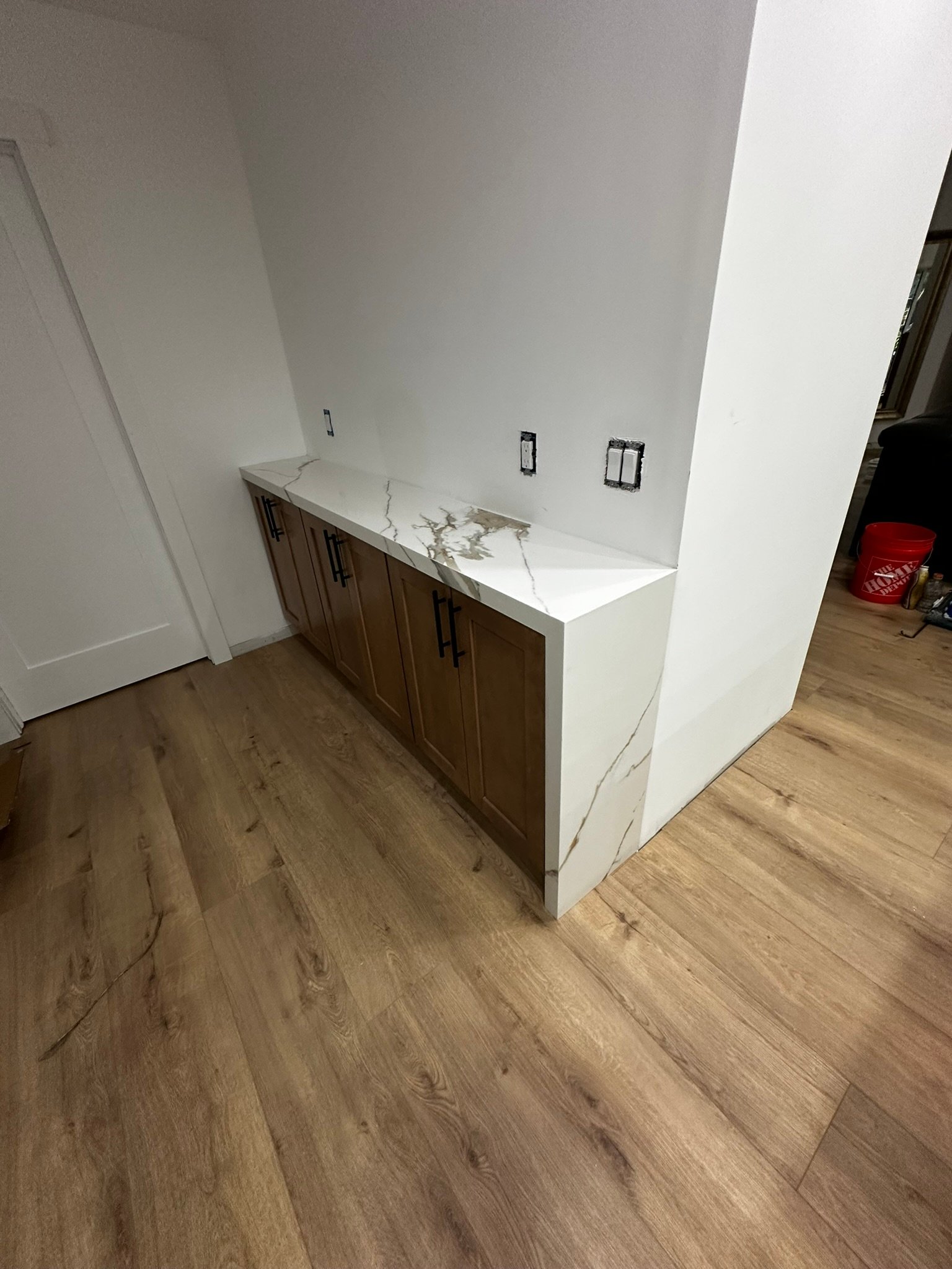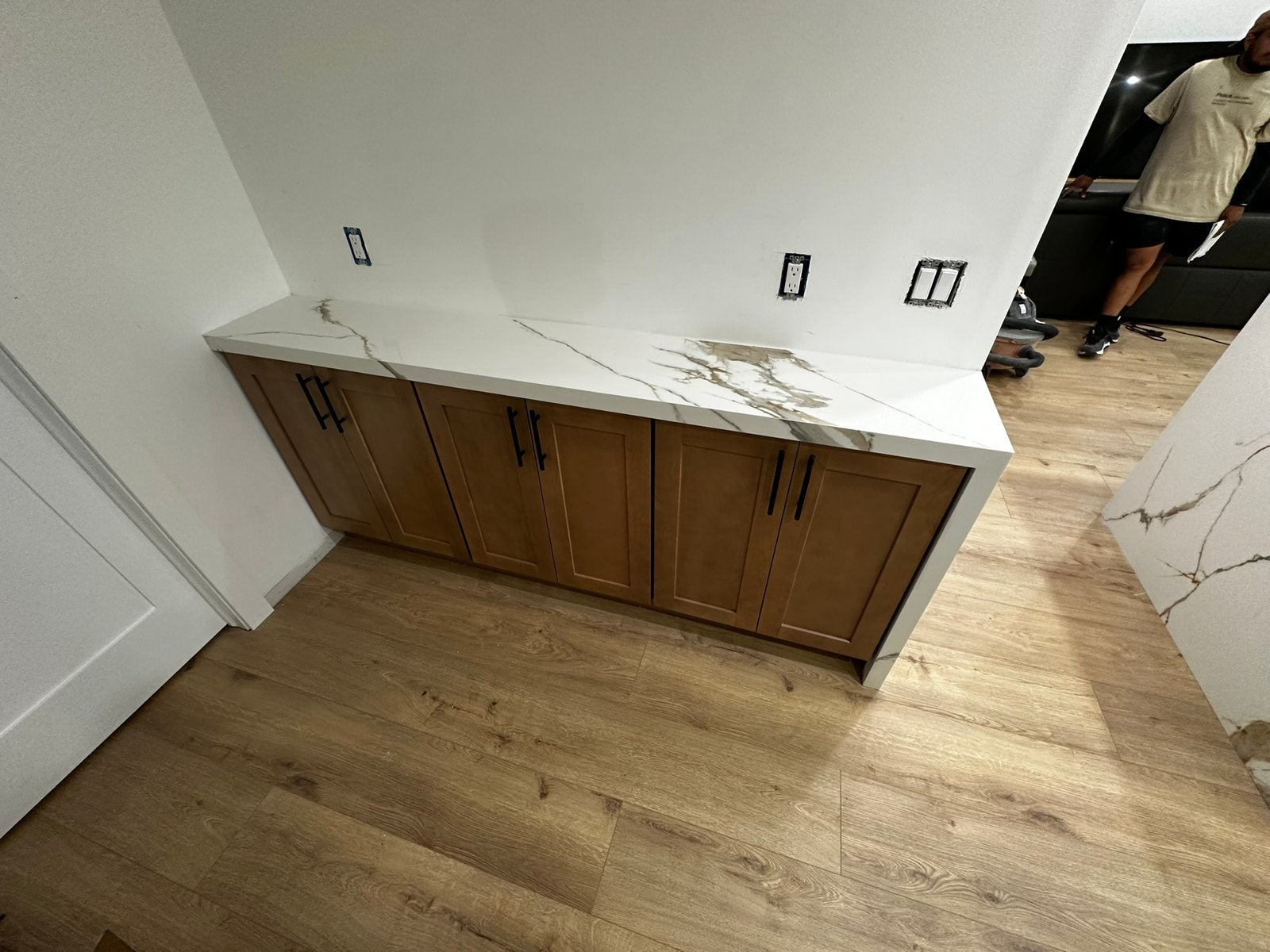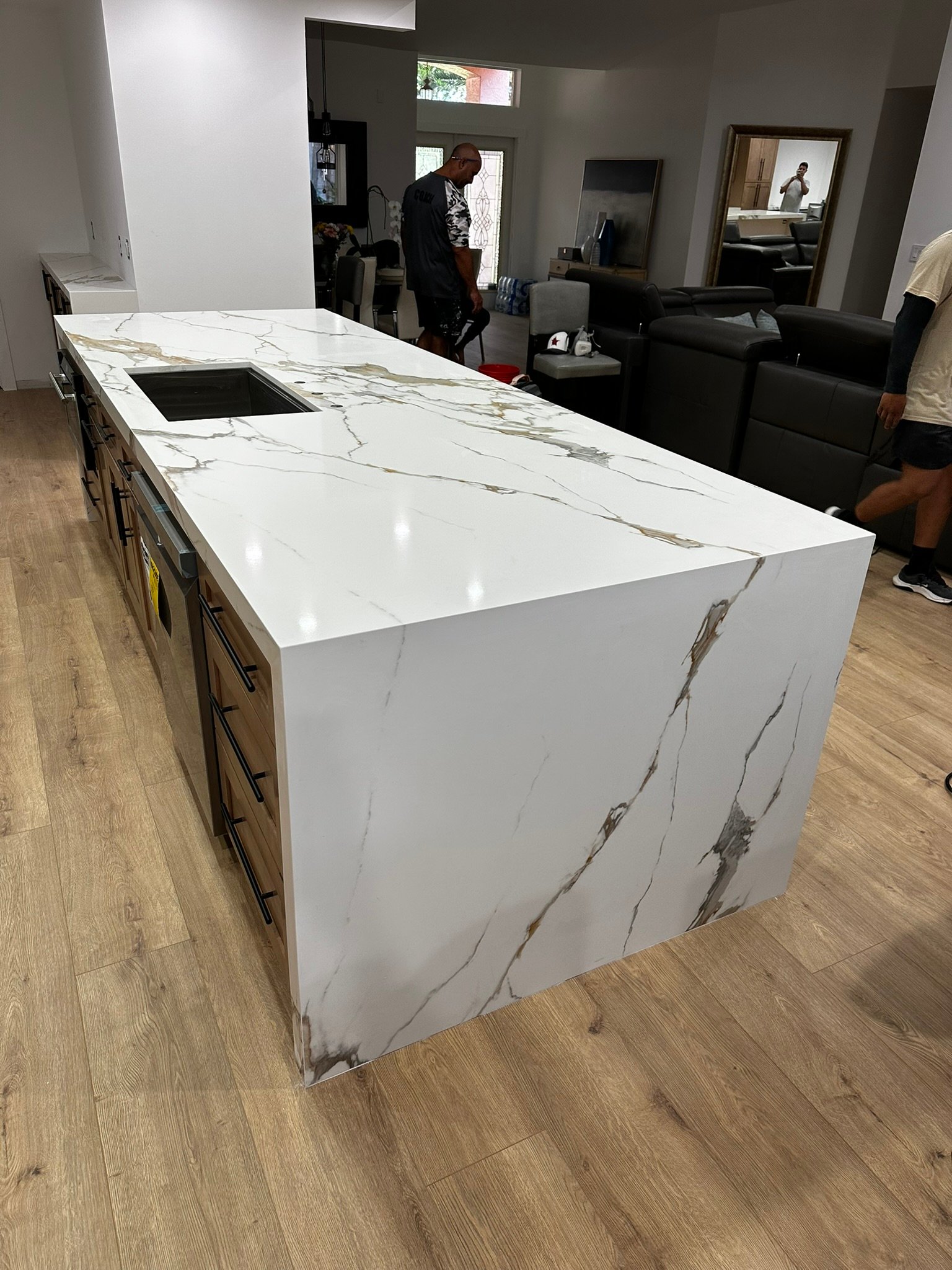 Este proyecto destaca por la instalación de una imponente isla central con cubierta de porcelanato tipo mármol, que combina funcionalidad y estética en un solo elemento. El diseño de concepto abierto permite una integración fluida con las áreas sociales, mientras que los acabados en madera natural y electrodomésticos empotrados refuerzan el estilo contemporáneo y sofisticado…